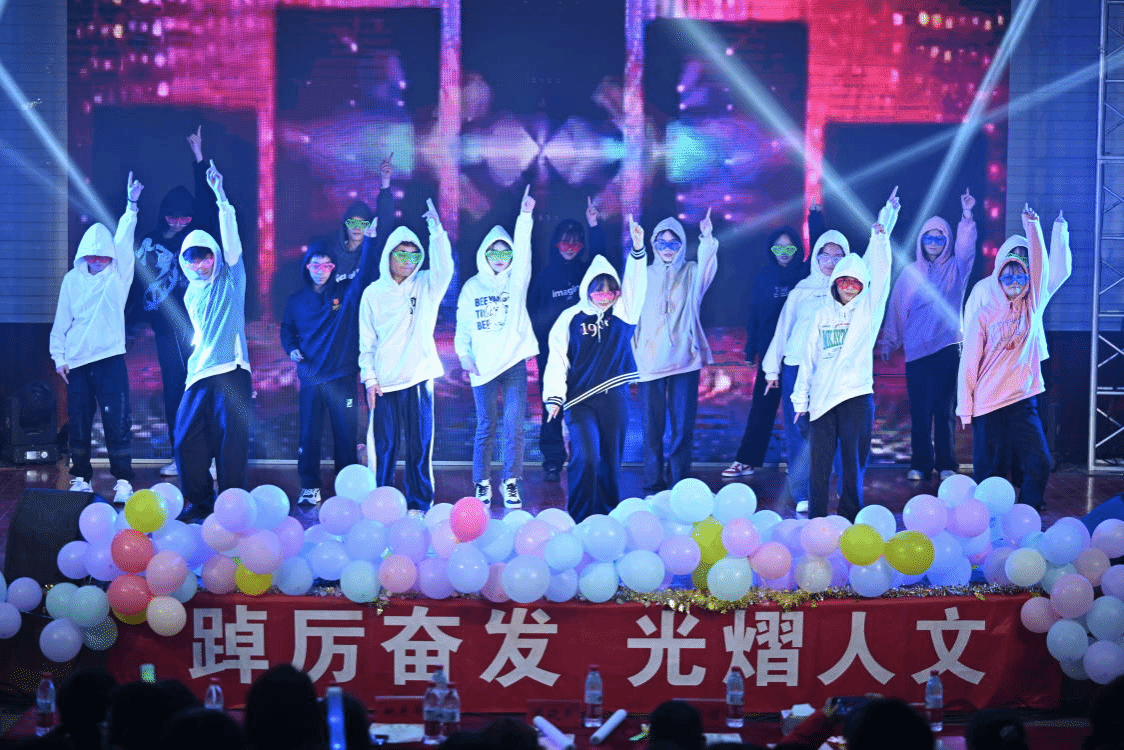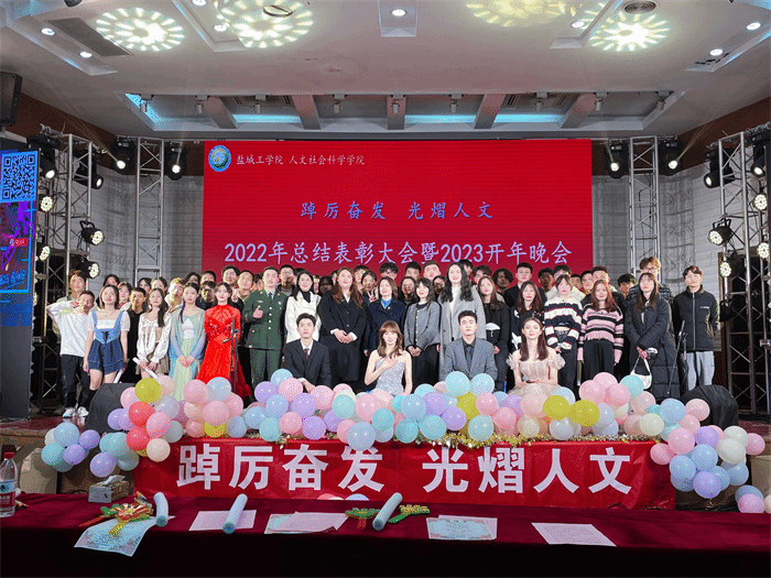 B旅游223夏沁同学带来热情洋溢的开场舞《burning》拉开了晚会的序幕。秋雨社同学们带来的正剧《红岩》引领观众回到了那个炮火连天、投身革命的峥嵘岁月。由王萍等同学带来的舞蹈《失恋阵线联盟》以欢快音乐与动作点燃了全场的气氛。刘嘉欣等同学用甜美的嗓音为我们带来合唱《心墙》。赵俊峰、邢豪、仲梓玮和凌韩玺同学带来的歌曲串烧《情非得已》、《忽然之间》、《乌梅子酱》、《你曾是少年》引起呼声阵阵。由吴群悦及其搭档带来的配音秀《学习的诱惑》洋洋盈耳,给台下的同学带来一场听觉盛宴。接着,小游戏《甄嬛传》台词接龙抢答引来同学们踊跃参与,全场气氛愉悦。欢乐的游戏时间结束后,宋倩倩同学带来了热情洋溢的舞蹈《solo》。女生合唱《决爱》深情动人,公司秋雨社带来的相声《诗词大会》更是让不少同学捧腹大笑。邓妍同学带来的舞蹈《潮生复水谣》引人入胜,让观众感受到了盐城湿地丹顶鹤的的优雅。刘瑞等同学带来的朗诵《青春献礼二十大》向我们展示了青年蓬勃的朝气与自信。专兼职辅导员代表和员工代表合唱《New Boy》将晚会推向高潮。最后,合唱《我爱你中国》表达了青年老员工乘着时代的春风,在以中国式现代化全面推进中华民族伟大复兴的新征程上续写新的华彩篇章的雄心壮志。