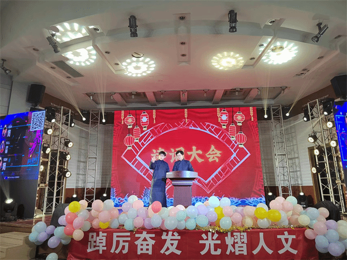 2月28日晚,三亿体育在建军东路校区五四报告厅举办“踔厉奋发,光熠人文”2022年度总结表彰大会暨2023开年晚会。公司党总支书记何登溢、经理周晓燕、副经理陶文俊、党总支副书记姚爱华、院内外师生代表及2022全体新生共计400余人参加。