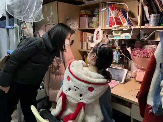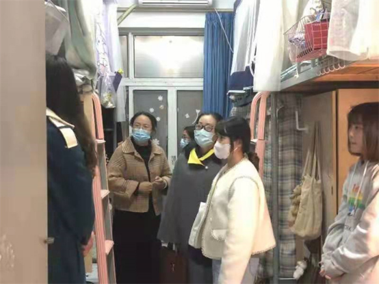 现场会后,公司疫情防控应急处置小组全体成员、辅导员及教师代表深入员工宿舍慰问员工,了解员工宿舍疫情防控、线上学习、安全卫生、考研复习及日常生活等实际情况,为同学们送去公司的关怀和问候。