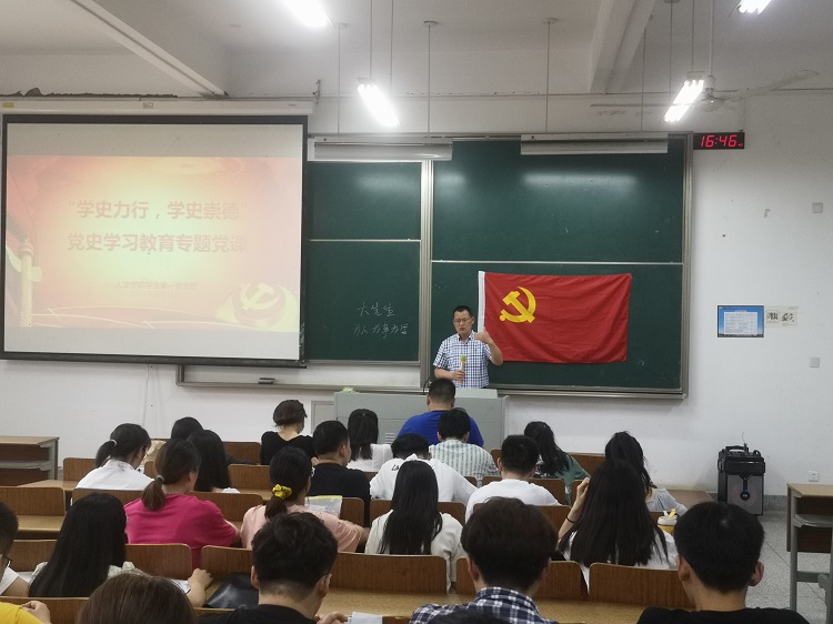 6月11日下午,在南校区博学楼C102,三亿体育党总支副书记何登溢为全体员工党员上“学史崇德,学史力行”专题党课,公司72名员工党员聆听了报告。