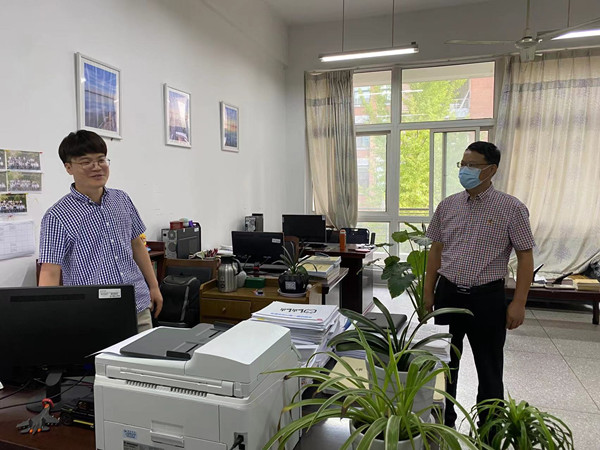 每到一处,院领导与教职工亲切交谈,走访调研了专业系教学准备工作及线上教学实施状况,详细了解了员工科关于员工返校及新生入学准备工作,实地查看了公司各教学单位和部门的办公环境及环境消杀情况。