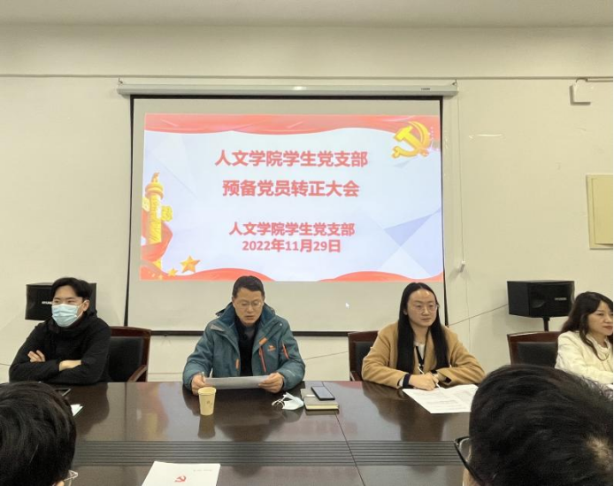 会议第二项议程是讨论预备党员转正事宜,朱汉琦等15名预备党员逐一宣读转正申请书,向党组织汇报一年预备期的情况;入党介绍人分别介绍了发展对象的现实表现和培养考察情况,并对能否转正表明了意见;组织委员魏语婷代表支委会报告审查情况;与会党员进行充分讨论,对是否符合转正要求发表意见。经有表决权的正式党员投票表决,一致同意朱汉琦等15名同志转为中共正式党员。