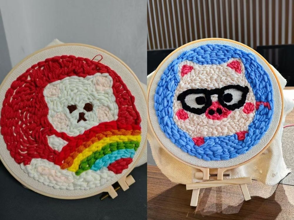 活动现场,教师们手持戳针,将五彩斑斓的毛线化作创意十足的的图案,有人以青绿山水演绎宋韵风雅,有人用卡通图案传递童趣,展现了教职工们的心灵手巧和艺术才华。活动现场气氛热烈,女教职工们在制作手工艺品的同时,也交流了生活趣事和工作经验。活动结束后,公司分工会还为每位女教师准备了精美的伴手礼。