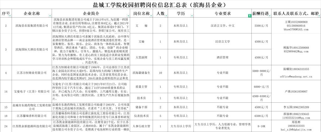 滨海县企业岗位需求汇总表(时间:6月2日下午14:30,地点:希望大道校区老员工活动中心一楼).xls