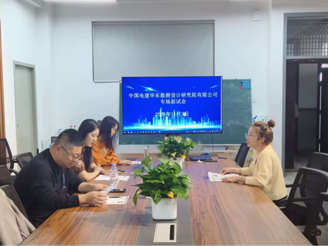 面试会伊始,余峰向毕业生们简要介绍了公司类型、发展方向、岗位需求、面试流程等具体情况。随即由毕业生分别向面试官进行自我介绍。他们与面试官面对面交流,展现出了良好的专业素养和沟通协调能力。面试官认真倾听并询问他们对未来工作内容的期望,并对应聘的毕业生进行了一对一的单独面试。会后,面试官对毕业生们的表现给予了高度评价,他们表示,本次面试会是同学们与公司的“双向选择”,公司期待与更多的优秀人才一起,共同推动中国电力建设事业的发展。
