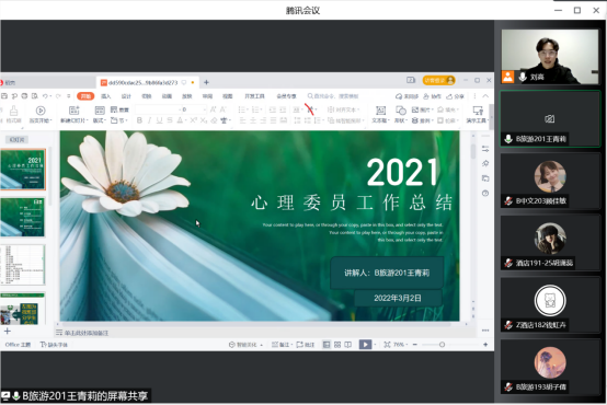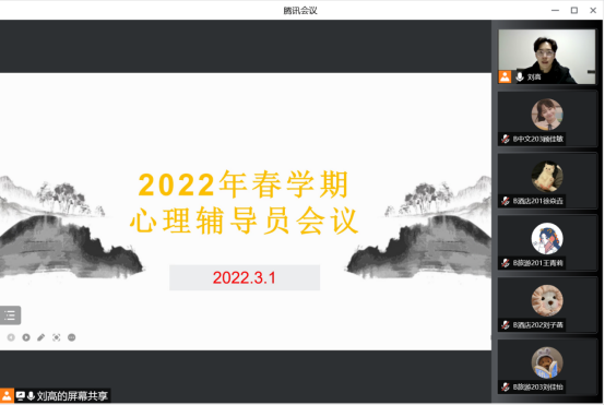 会议结束前,刘高老师要求各班级心理委员将会议内容尽快以线上会议的形式与班级同学分享,提高同学们对心理健康的重视度,及时发现同学们心理问题与心理危机的识别,有效增强干预能力。