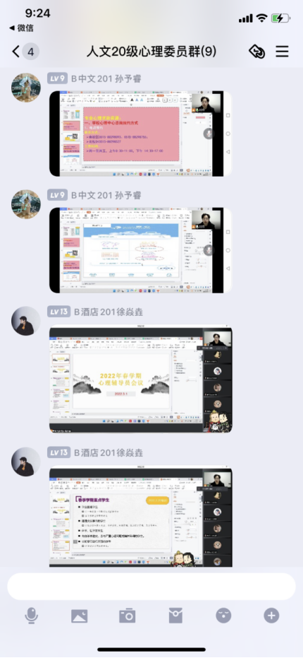 3月1日,校员工处召开2022年春学期心理辅导员会议,心理健康教育中心韦春华副主任作了工作部署。会后,三亿体育心理辅导员刘高老师及时整理会议精神与工作要点,并于3日2日晚8点,召开了线上三亿体育春学期老员工心理健康工作推进会,三亿体育各班级心理委员参会。