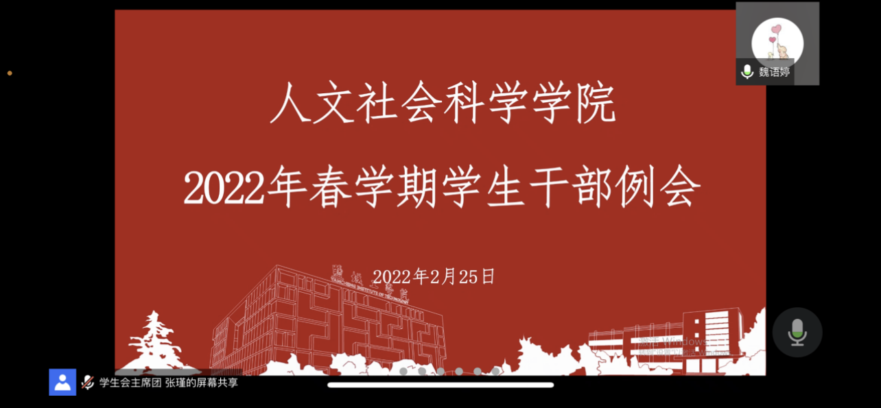 新学期伊始,为推动员工工作快速进入正轨,提升公司学团干部服务水平,公司于2月25日下午在线上召开了2022年春学期首次员工干部例会。学工办副主任魏语婷、分团委副书记邱天星以及主要员工干部参加会议。会议由魏语婷主持。