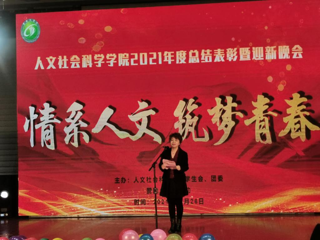 12月26日晚,“情系人文,筑梦青春”2021年度总结表彰暨迎新晚会在建军东路校区五四报告厅举行。公司党总支书记何登溢、经理周晓燕、副经理陶文俊、党总支副书记姚爱华和师生代表300余人参加。