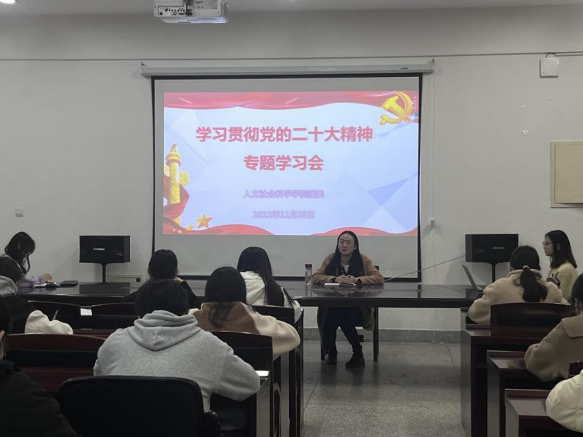 在“学习贯彻党的二十大精神 ”专题学习会上,同学们通过观看央视新闻制作的主题视频回顾了党的二十大胜利召开情况。随后,负责公司团委工作的老师乐珮珮对党的二十大报告的主题、内容及重要意义进行领学,重点阐述了习近平总书记对广大青年的深切寄语,她希望同学们要从二十大精神中汲取奋进力量,立志听党话、跟党走,立志为党和人民永久奋斗、赤诚奉献,争做新时代好青年。与会的团学干部结合自身学习生活实际,踊跃发表学习感悟,纷纷表示要时刻牢记习近平总书记殷殷嘱托,响应党和国家的号召,学习贯彻党的二十大精神,以青春之我、奋斗之我,为实现中华民族伟大复兴的中国梦贡献青春力量。