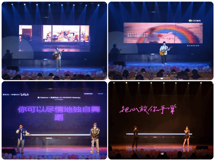 本场晚会精彩纷呈,涵盖了歌舞表演、话剧、相声、朗诵、器乐弹唱等多种艺术表演形式,经过了数月的准备,为全场观众带来了一场视听盛宴。少数民族员工惹只么鲁作等表演的舞蹈《what is love》&《Queencard》以欢快的节拍和动感的舞步点燃全场,正式拉开晚会序幕。仲梓玮、何禹婷同学带来男女合唱《危险派对》充满朝气与活力。B中文233班同学用轻快诙谐的曲风和独特的演绎形式展现的舞台剧《达拉崩吧》引起在场阵阵欢笑。夏沁同学的拉丁舞《Samba》热情奔放。陆澄等同学带来的配音秀《哪吒之魔童降世》和《长安三万里》以多变的声线演绎经典国产动画情节,给观众们带来一场听觉盛宴。麦尔旦、严裕博同学的说唱歌曲《雪Distance》和《隆里电丝》点燃了全场观众的热情,将晚会推向高潮。秋雨社演绎的话剧《坚守》,以古今对话的方式带领大家深入感悟李大钊、焦裕禄、黄大年等共产党员至死不渝的爱国情怀与崇高的理想信念。廖启翰、邢濠同学的歌曲串烧《谁》、《成都》、《爱的回归线》深情动人,高铭、李慕蓉同学的相声《咱们俩》引得现场笑声不断。邱子涵、陈翊彤同学的古筝舞蹈《高山流水》带大家进入到高山流水觅知音的意境之中。朱元璋等同学朗诵的《以梦为马》以饱满的激情抒发了青年学子对祖国的赤子之情。23级中文班同学们合唱的《倔强》将青年员工拼搏向上、追逐梦想的精神面貌展现得酣畅淋漓。