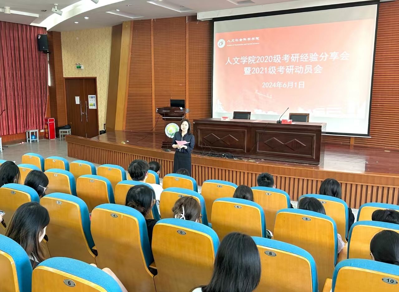 会上,考取四川农业大学、B酒店201班朱丽瑛同学以自己考研的经历为基础,从择校、初试、复试这三个角度进行讲解,提醒同学们要脚踏实地,厚积薄发并祝愿2021级考研学子金榜题名,高分上岸;考取南京工业大学、B旅游203班仇豫晗同学从个人情况、备考经验这两个方面展开讲述,引导同学们要保持好心态、注意劳逸结合、坚持到底,她鼓励学弟学妹们“把书背烂,把题刷烂,克服苦难,一定上岸!”;考取西北民族大学、W中文201班花勇同学结合自身的调剂经历从调剂原因、调剂择校、调剂复试三个方面向大家进行考研调剂的讲解,并鼓励大家不要轻言放弃,坚持就是胜利!考取澳大利亚悉尼大学、B中文201班沈魏佳同学给同学们分享了海外申硕的相关知识,鼓励更多同学拓展国际视野,提升留学申硕的信心,提前做好时间规划,申请到理想的硕士院校。