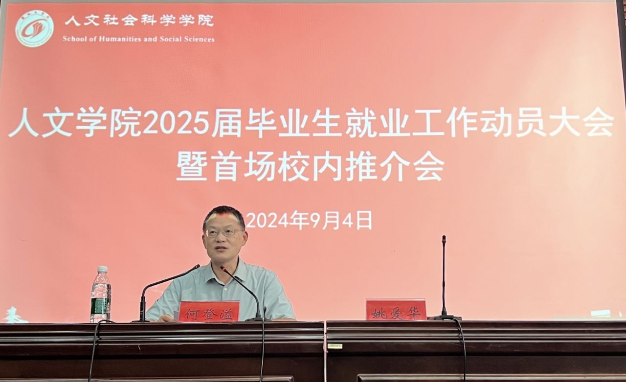何登溢作题为《认清形势早准备,找准定位圆夙愿》的动员讲话。他指出,面对日益严峻的就业形势,一是要做好就业的思想准备、技能储备、实践准备;早谋划、早安排、早着手、早行动,重视就业选择,避免“慢就业”。二是要紧密结合自身专业优势与行业发展趋势,积极拓宽就业视野,勇于探索多元发展路径,在更广阔的舞台上实现自身价值。他希望,同学们应保持谦逊之心,戒除浮躁之气,持续努力,不懈奋斗,顺利实现求职理想。