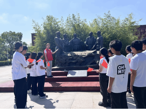 随后,同学们来到公司铁军广场。“文心苑”一站式员工社区志愿者、“苏行·传递新四军文物之声”社会实践团成员陆澄、段黄蕊等同学向大家介绍了铁军广场“青松傲雪”雕像的由来,讲述新四军革命先烈们在盐阜大地上的英勇事迹。最后,大家手举小红旗,共同唱响《没有共产党就没有新中国》、《我爱你中国》、《少年中国说》等红色歌曲,将对党的感激之情和对祖国的赞美融入到歌声中,以昂扬的精神风貌唱响了颂党恩、跟党走的时代主旋律。