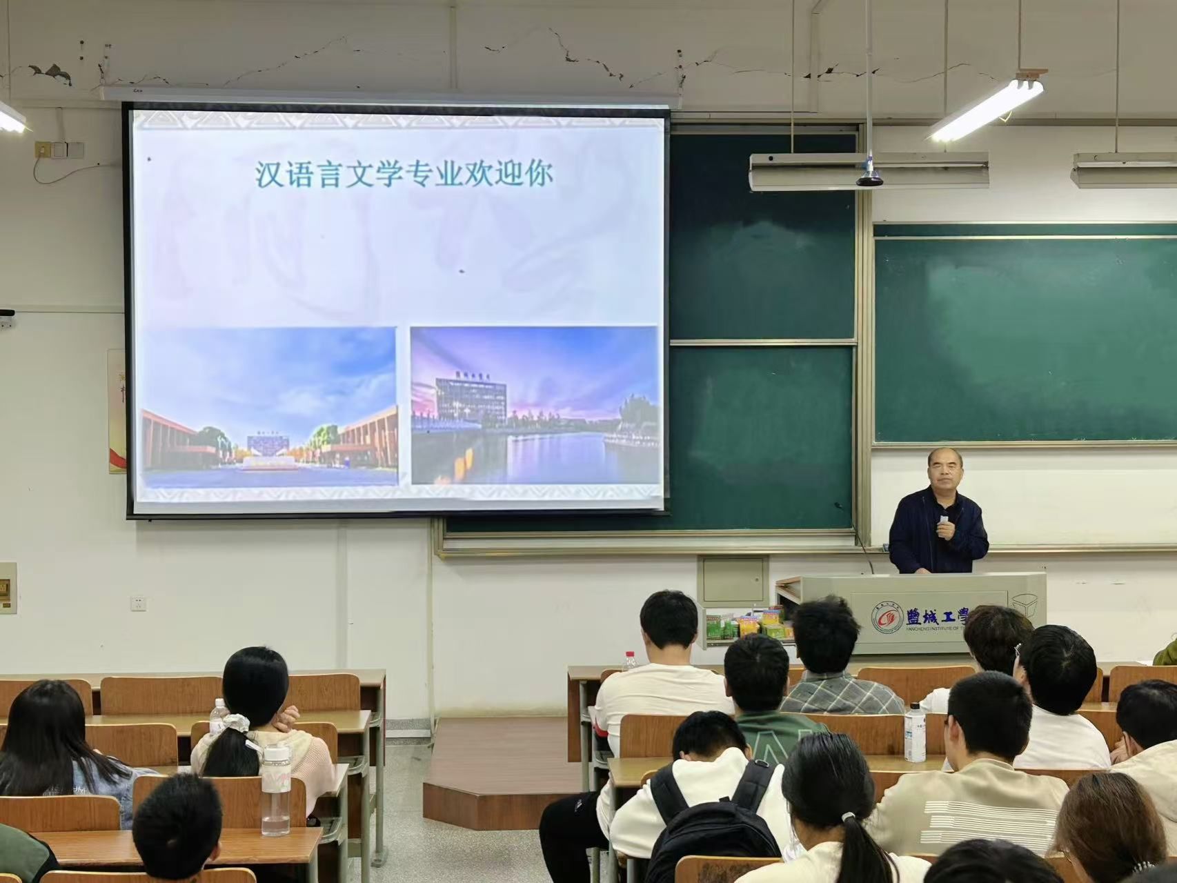 蒋继华围绕专业认识、特色优势、人才培养方案、学科竞赛成果、考研考公、硕士点等方面向汉语言文学专业的新生们进行全面介绍,并结合自身丰富的从教经验,通过生动案例和详实数据阐述了大学教学组织形式的变化以及专业学习方法的重要性。他勉励新生要尽早规划大学四年的学习路径,在稳固专业根基的同时,要不断提升个人的学术造诣,并积极参与到公司的多样化实践活动中,努力实现个人的全面发展。