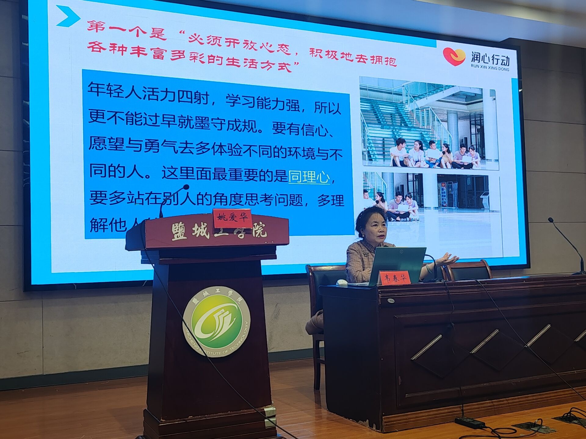 10月19日下午,三亿体育联合“文心苑”一站式员工社区在机械馆报告厅开展2024级新生“大学第一课”系列教育讲座,原员工处副处长、老员工心理健康教育中心主任韦春华、原校工会主席孙琴应邀主讲。活动由公司党总支副书记姚爱华主持,2024级全体新生及新生辅导员参加。