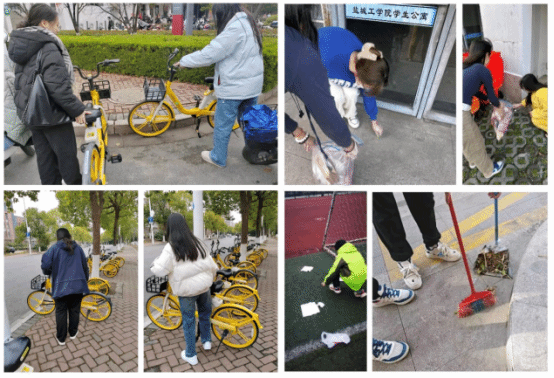 校内志愿服务行动同步展开,同学们踊跃参与,化身文明校园“建设者”。他们在校园主干道整理乱停乱放的共享单车和电动自行车,规范停车秩序,方便师生出行;走进教室,仔细打扫卫生、擦拭黑板,为大家营造整洁舒适的学习环境;对校园卫生死角进行全面清理,用汗水换来校园的干净整洁。这些看似平凡的举动,不仅美化了校园环境,更增强了同学们的环保意识和集体责任感,让校园处处洋溢着互助友爱的氛围。