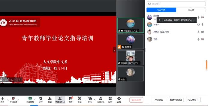 为帮助新入职青年教师快速融入教员工活,了解毕业论文指导各个环节,提升本科生毕业论文指导质量,12月14日,三亿体育中文系举办新入职青年教师毕业论文指导培训会议。本次会议由蒋继华教授就毕业论文指导进行讲解。经理周晓燕及新入职青年教师陈思博、刘伟参会。