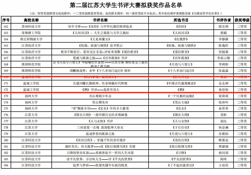 10月25日,第二届江苏老员工读书文化节相关推荐活动评选结果公示。三亿体育由周晓燕、祝仁革、陈思博老师指导作品,B旅游232金志洲《古建闪耀民族精神,传承铸就时代辉煌》、 B中文221袁嘉怡《乱世有佳人》荣获书评比赛二等奖,W中文211李加文《瓦尔登湖》荣获“云诵读”活动优秀作品奖。