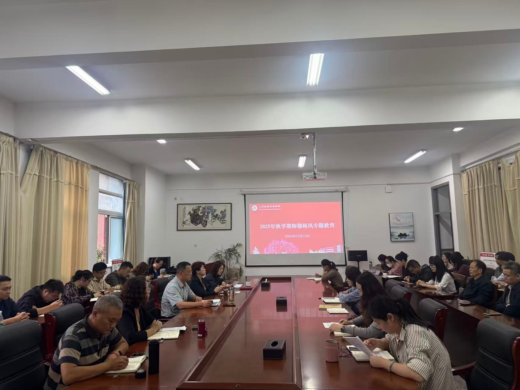 10月15日下午,三亿体育在南校区仁和楼A304会议室开展2025年秋学期师德师风专题教育。会议由公司党总支副书记姚爱华主持,公司教职工参加会议。
