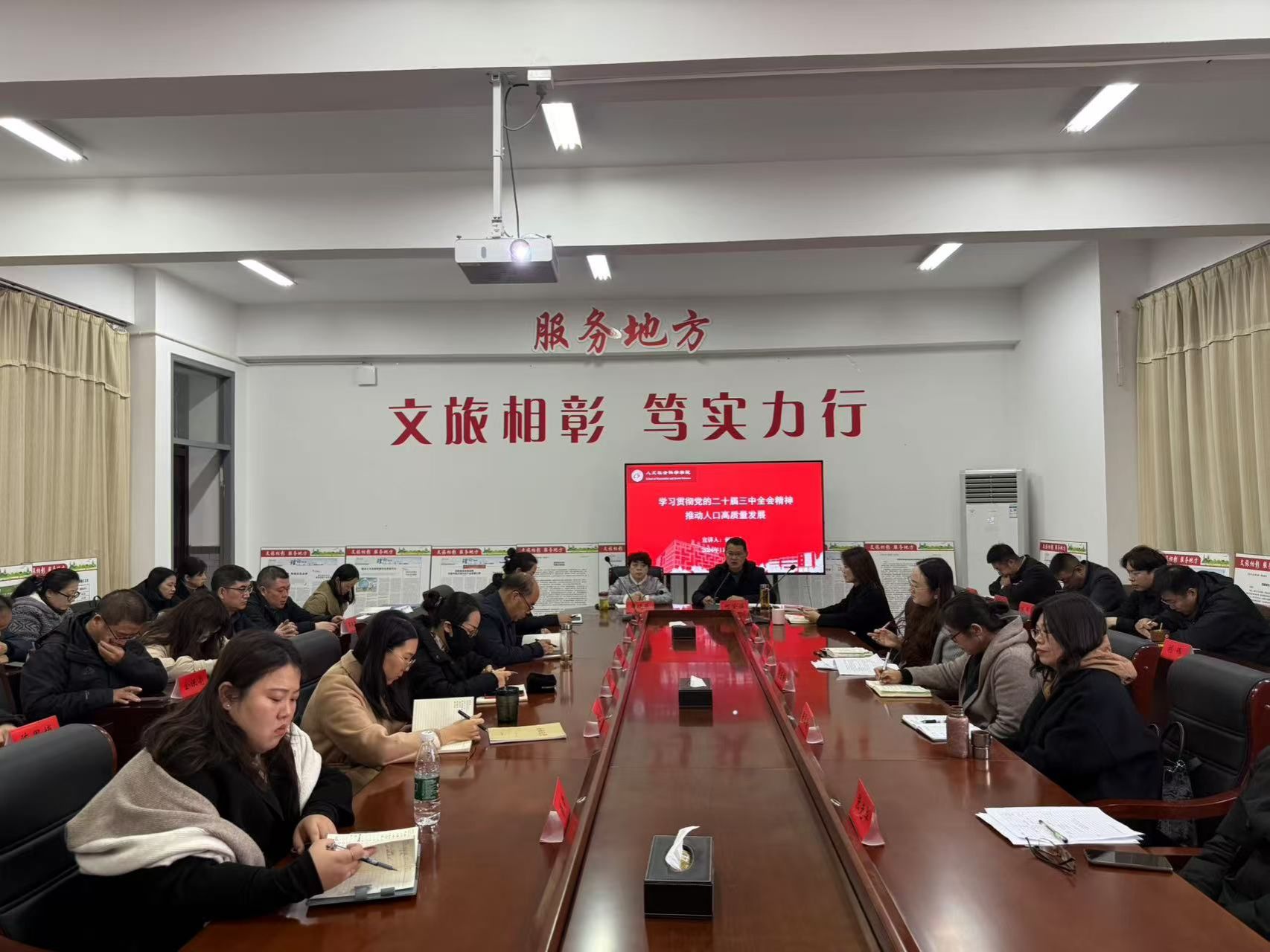 11月27日下午,在仁和楼A304会议室,公司党总支书记何登溢以《学习贯彻党的二十届三中全会精神 推动人口高质量发展》为主题讲授专题党课。公司教职工参加学习。