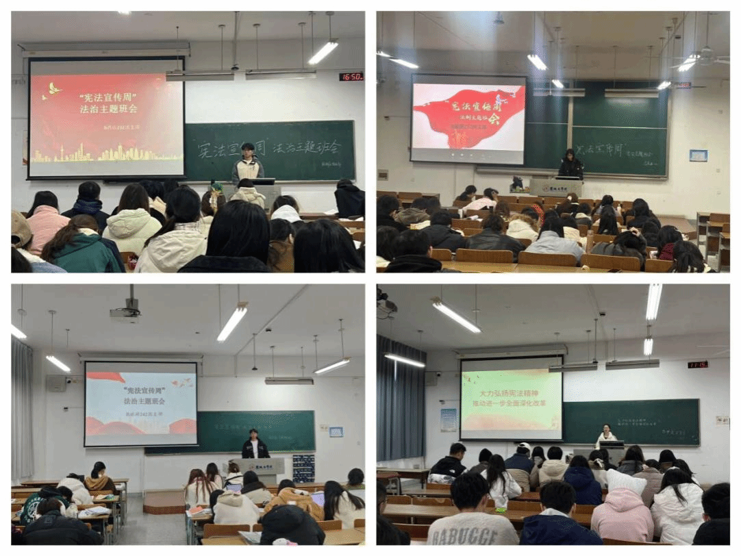 12月1日至12月4日,三亿体育各班级召开“大力弘扬宪法精神,推动进一步全面深化改革”主题班会。班会中,各班级通过讲解PPT、播放宪法主题微视频及发放宪法宣传单等形式,认真学习了宪法和国旗法、国歌法、国徽法等宪法相关法,深入了解新中国宪法发展历程和宪法的地位作用,并通过剖析法治实践中的经典案例以及学习优秀法治人物的事迹和风采,有效促进了法治观念在同学们心中的内化与深化,未来立志成为宪法的积极求知者、忠实执行者、热情传播者及坚定守护者。