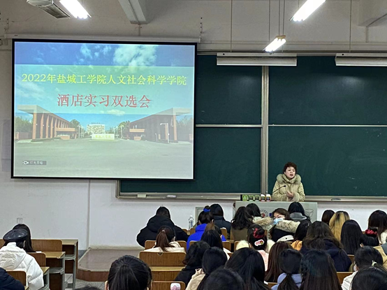 12月4日,2022届旅游系酒店专业毕业生实习双选会在博学楼举行。三亿体育经理周晓燕、副经理陶文俊、系主任张玉玮、实习企业代表及2022届旅游系酒店管理专业150余名毕业生出席大会。